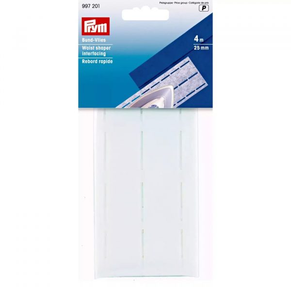 This ironable waist shaper interfacing can be used to perfectly make an even skirt or trousers seam. The interfacing reinforces and stabilises the fabric during ironing. Its three perforated cutting lines specify the pleating and the seam allowance. This makes it easier to pleat and stitch the waistband. For waistband widths of 25 mm and 30 mm, the Prym assortment offers waist shaper interfacings in white and anthracite in lengths of 4 m or 30 m. A white 4 m-long tape is available for making a wide 40 mm waistband. This easy-care waist shaper interfacings, made of 60% polyester and 40% cellulose, are washable up to 95 degrees.